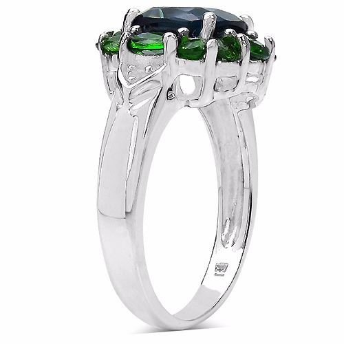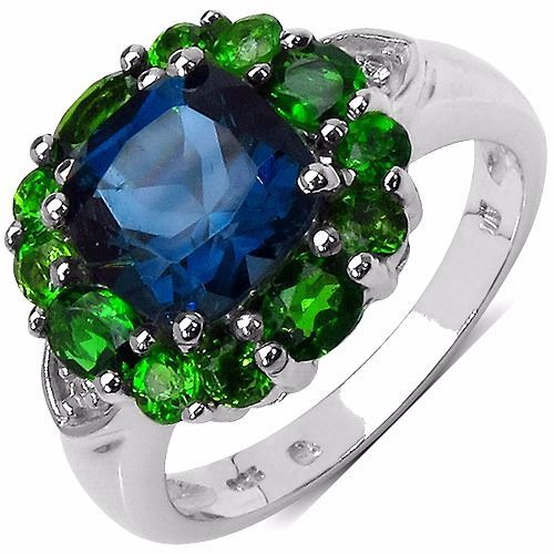 STERLING SILVER LONDON BLUE TOPAZ AND CHROME DIOPSIDE RING