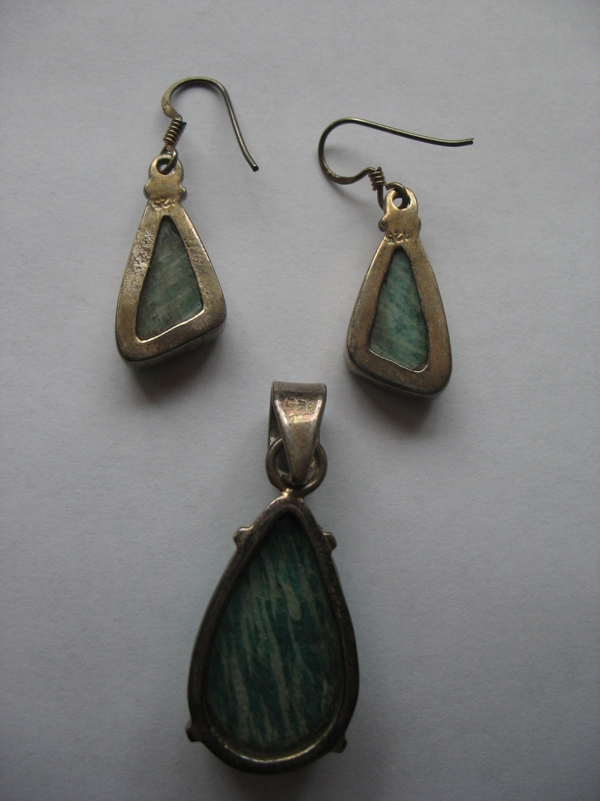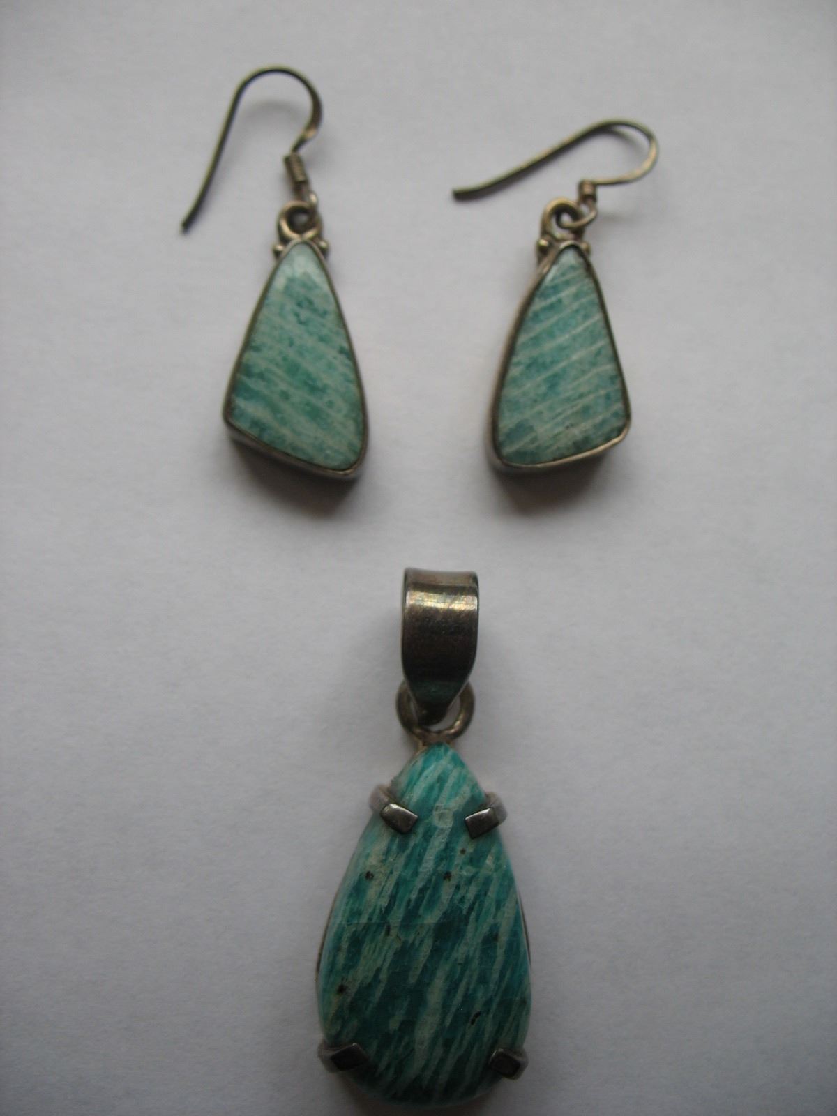STERLING SILVER MATCHING PENDANT & EARRINGS - AMAZONITE