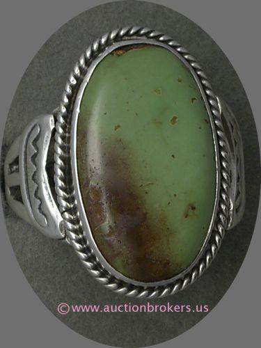 STERLING SILVER MEN'S RING SET WITH AN OVAL CUT TURQUOISE STONE. 8 GRAMS