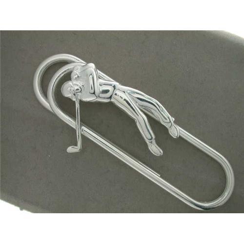 This Money Clip from my collection is ideal for any man who enjoys playing - or watching Golf! It is a SOLID STERLING Silver Money Clip, designed like a large paperclip, with a man swinging a golf club. The Money Clip measures 2 1/4" x 1/2" and it is in 'Brand New' condition.