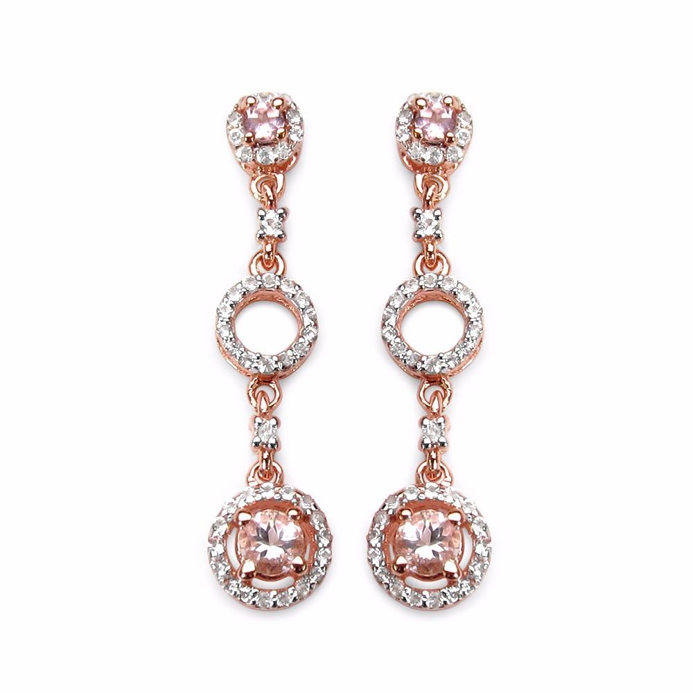 STERLING SILVER MORGANITE AND PINK TOURMALINE DROP EARRINGS
