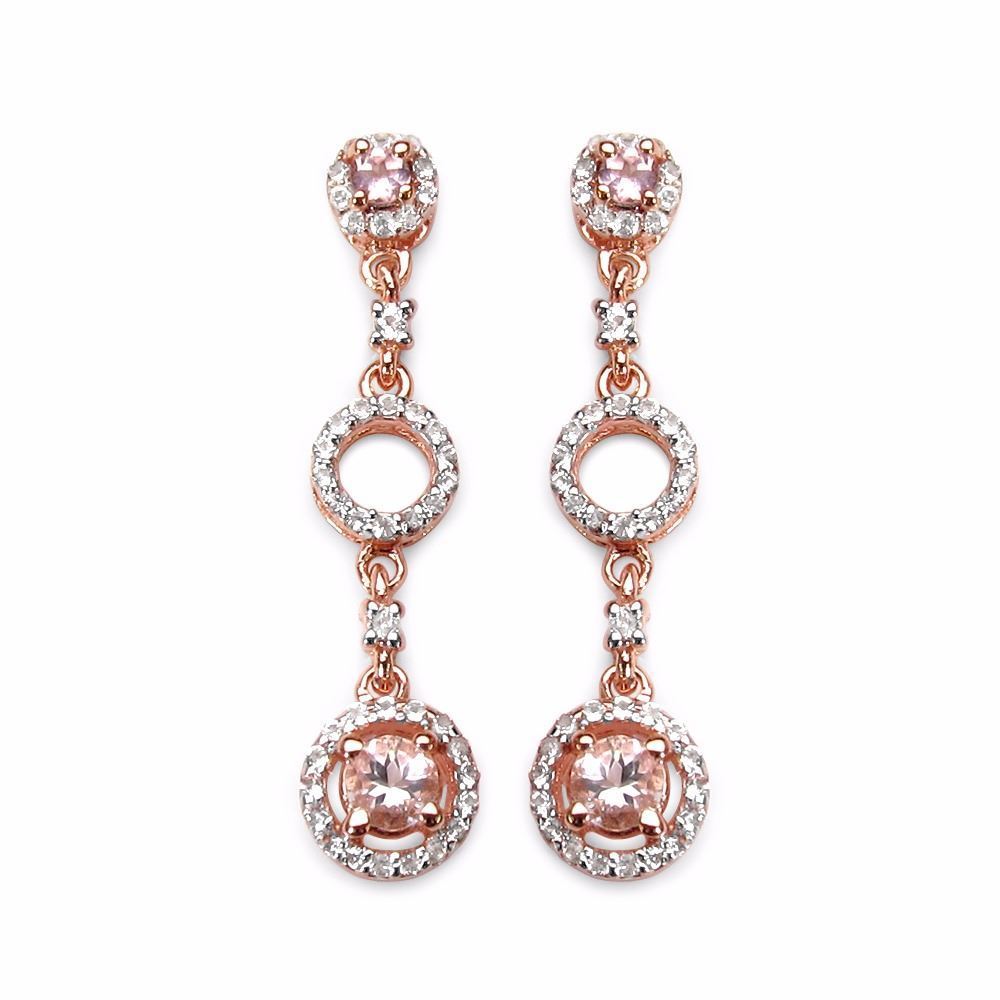 STERLING SILVER MORGANITE AND PINK TOURMALINE DROP EARRINGS