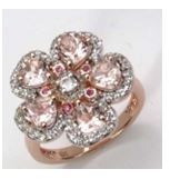 Gemstone Description: Morganite Heart Shape 5.00mm - 5Pcs + Pink Tourmaline Round 1.20mm - 5Pcs + White Topaz Round 2.50mm - 1Pc + White Topaz Round 1.00mm - 76Pcs ( White Pan Rhodium Plating )