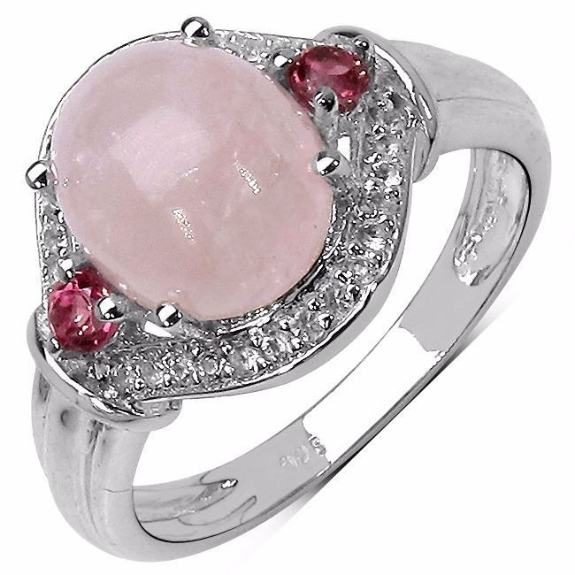 Gemstone Description: Morganite Cabochon Oval 10x8mm - 1Pc + Rhodolite Round 2.50mm - 2Pcs + White Topaz Round 1.00mm - 28Pcs