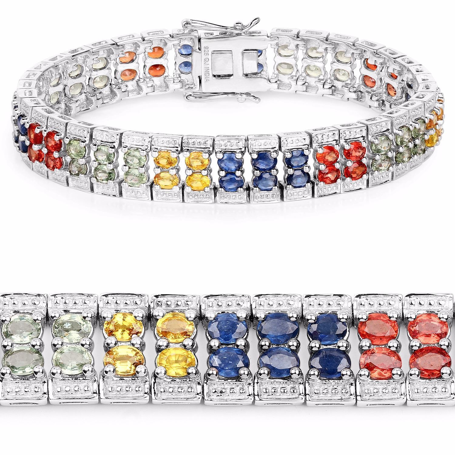 STERLING SILVER MULTI COLOR SAPPHIRE TENNIS BRACELET
