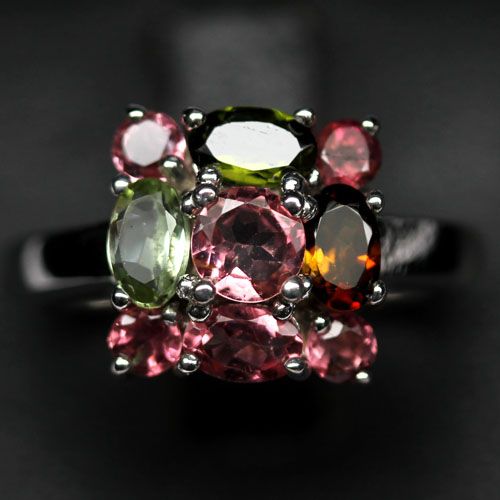 STERLING SILVER MULTI COLOR TOURMALINE RING SIZE 6.5"