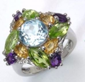 Gemstone Description: Blue Topaz Round 8.00mm - 1Pc + Peridot Marquise 8x4mm - 4Pcs + Golden Citrine Pears 5x3mm - 4Pcs + African Amethyst Oval 4x3mm - 4Pcs + White Topaz Round 1.00mm - 4Pcs