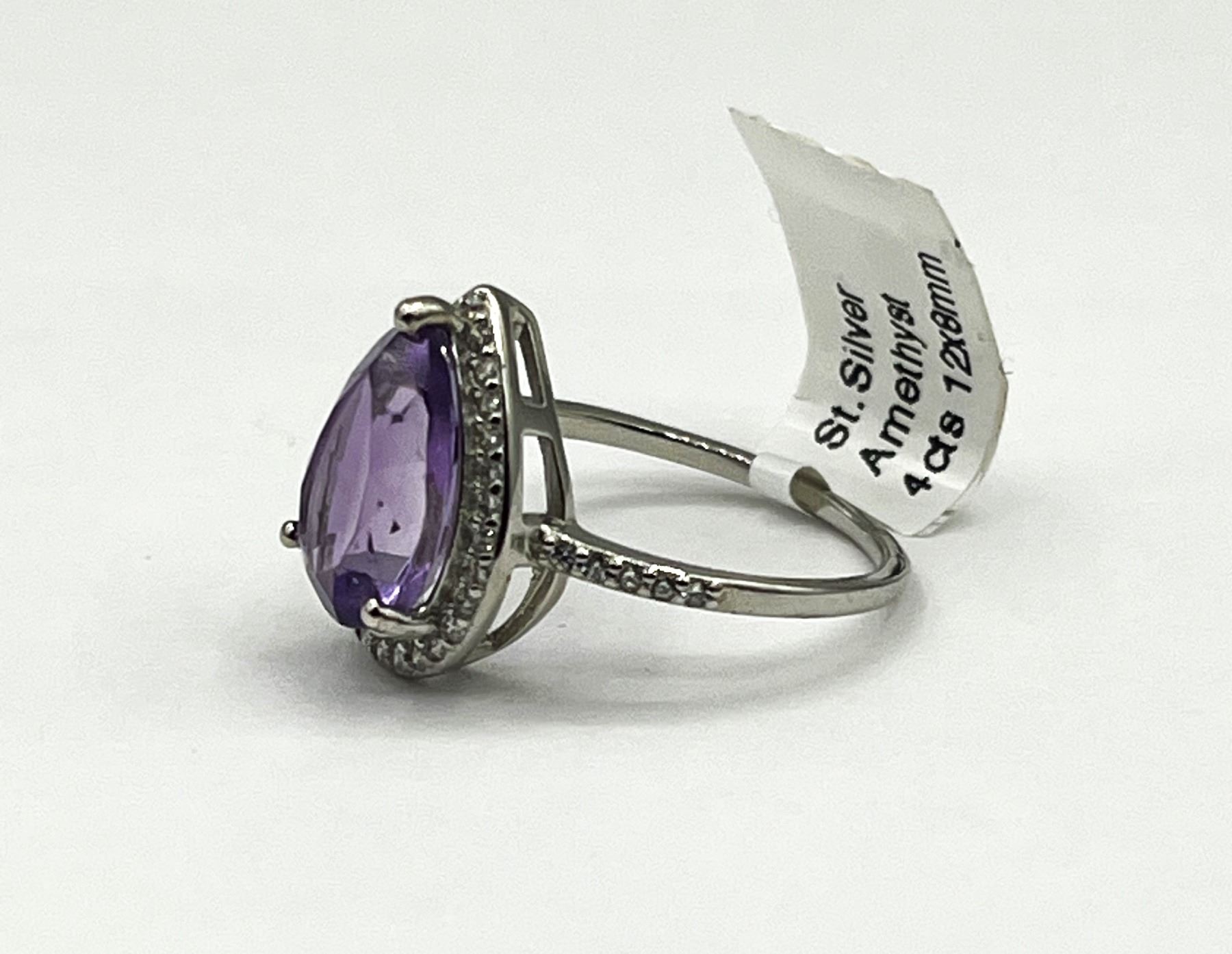 WITH CZ (0.15CT) RING, SIZE , W/A $480.00. AMETHYST IS THE BIRTHSTONE FOR FEBRUARY.