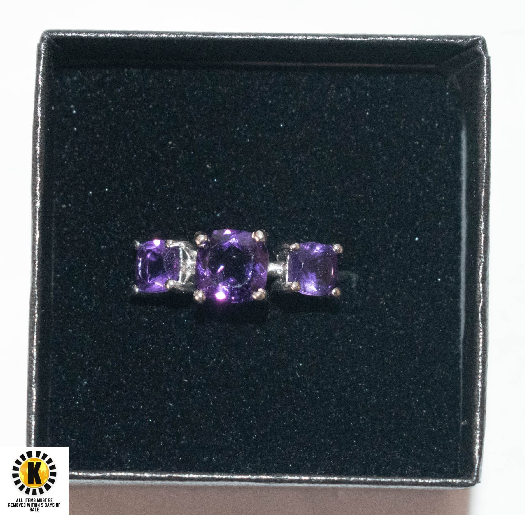 STERLING SILVER NATURAL AMETHYST GEMSTONE RING