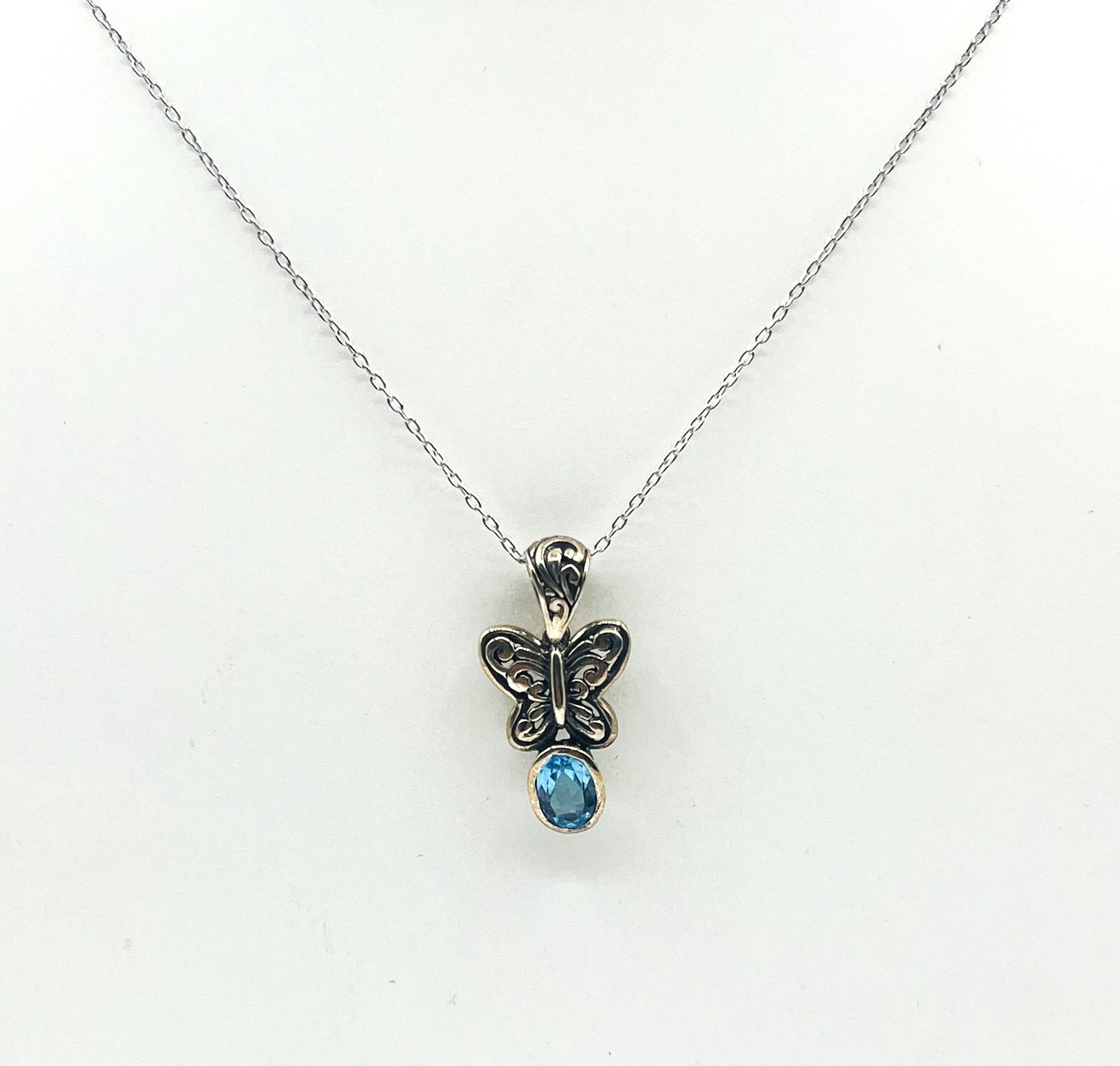 PENDANT WITH STERLING SILVER CHAIN, W/A $300.00. BLUE TOPAZ IS THE BIRTHSTONE FOR DECEMBER.