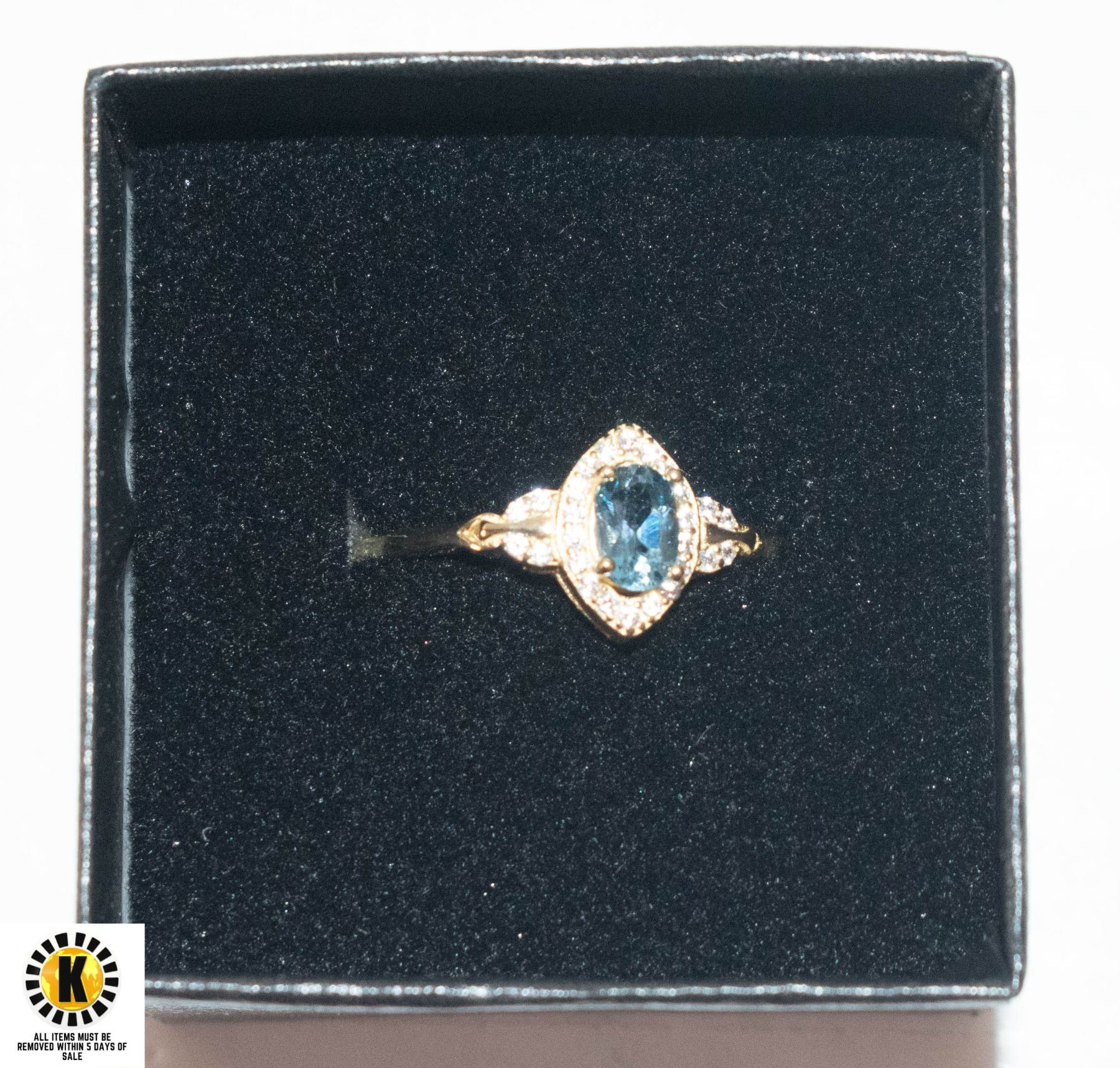STERLING SILVER NATURAL BLUE TOPAZ GEMSTONE RING