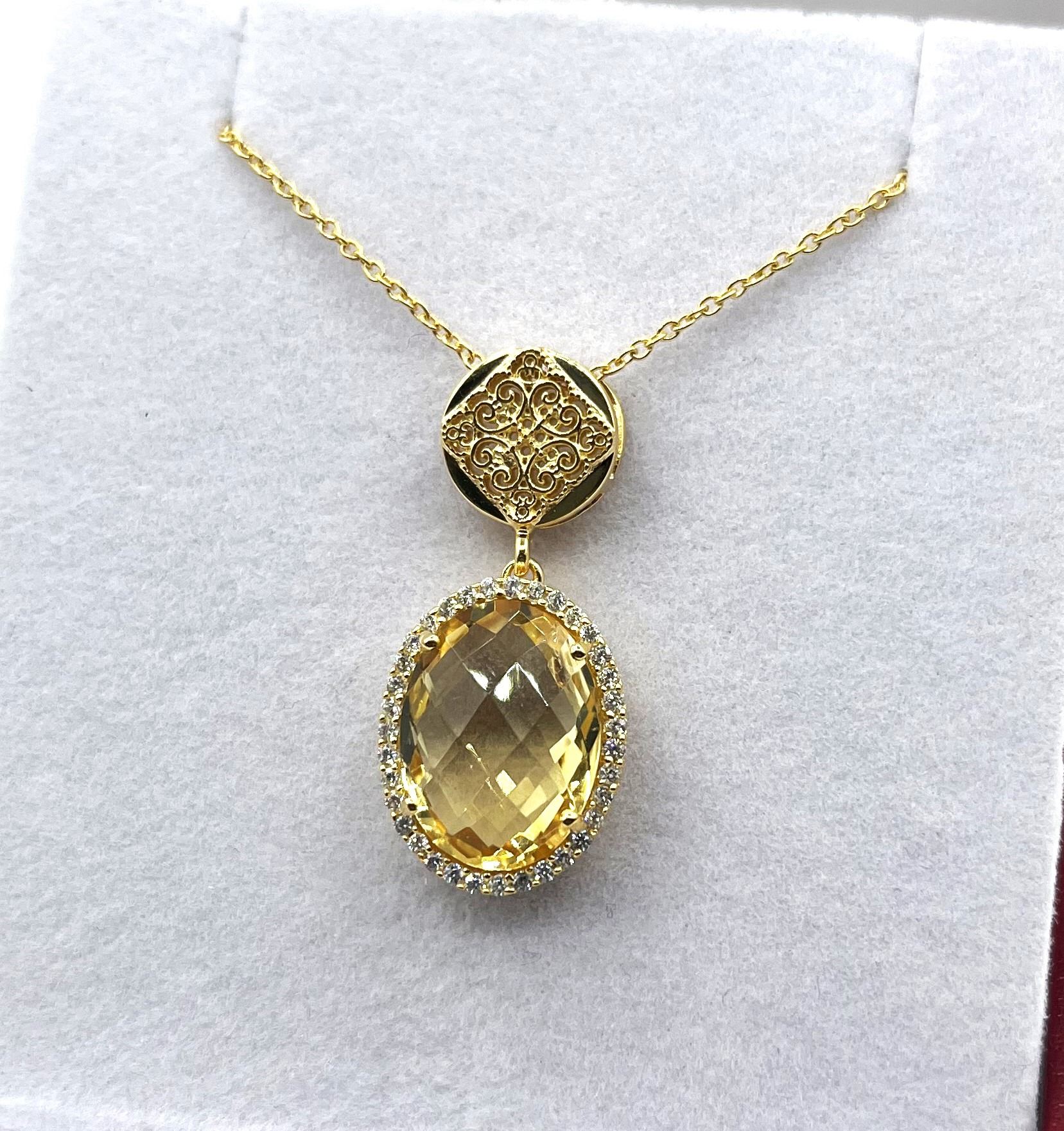 WITH CZ (0.35CT) PENDANT WITH YELLOW GOLD PLATED STERLING SILVER CHAIN, W/A $1025.00. CITRINE IS THE BIRTHSTONE FOR NOVEMBER.