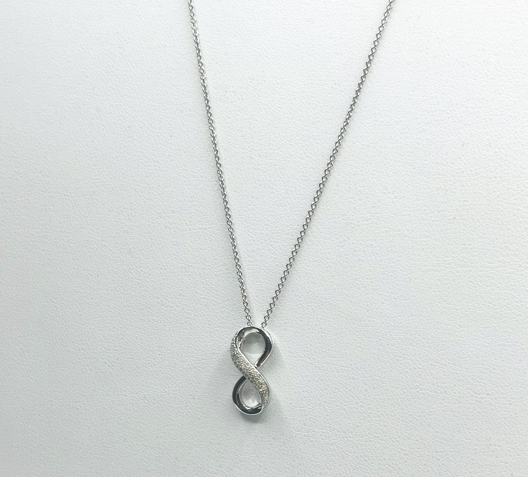 INFINITY SHAPE PENDANT WITH STERLING SILVER CHAIN, W/A$400.00.