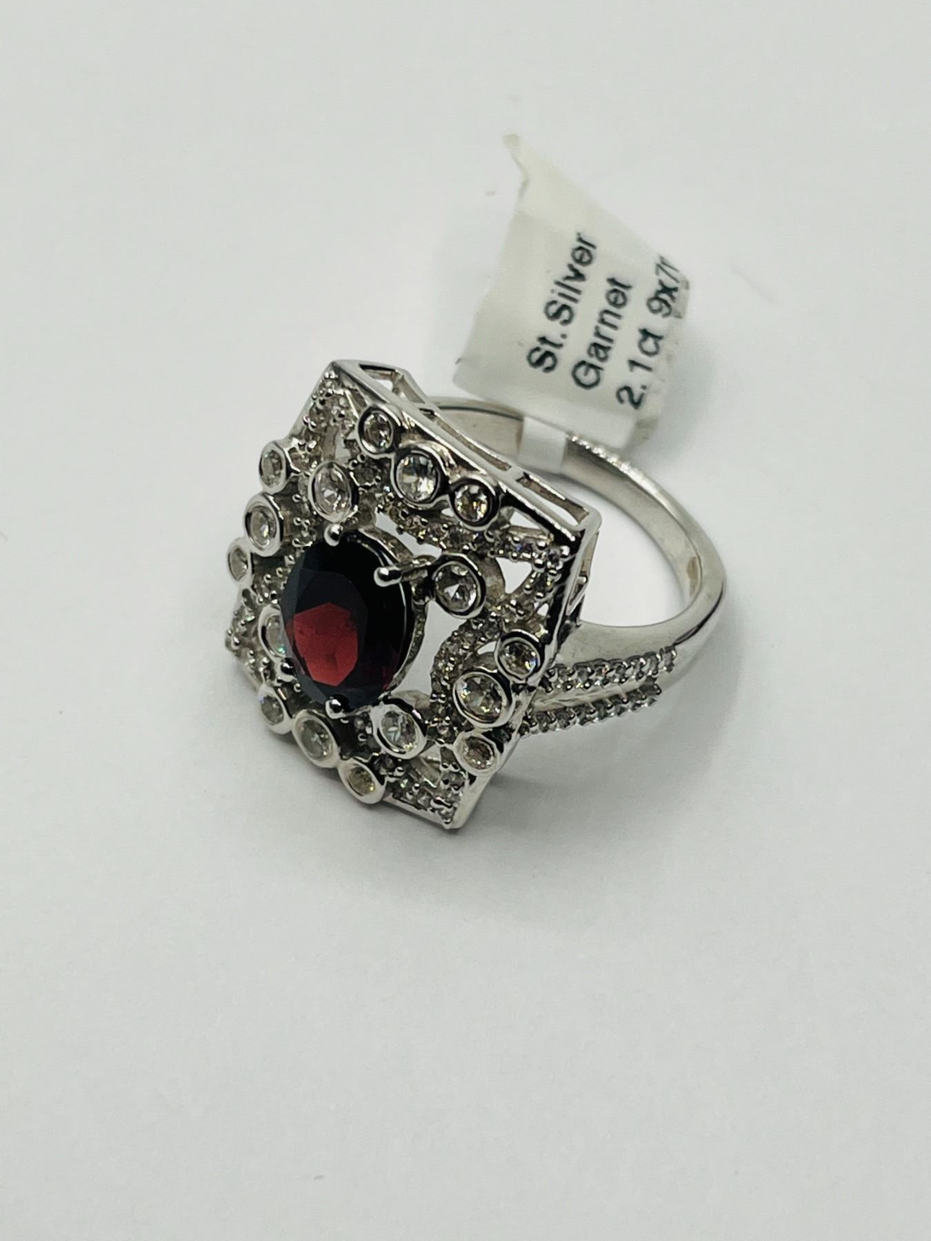 STERLING SILVER NATURAL GARNET (2.10CT) WITH CZ