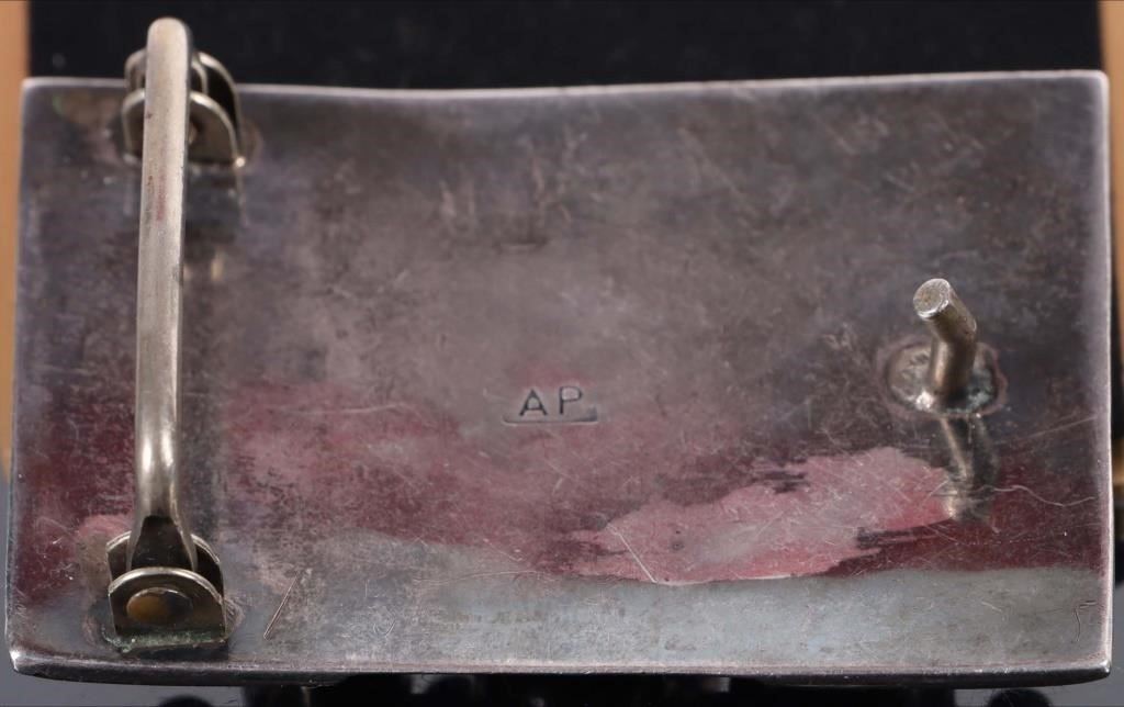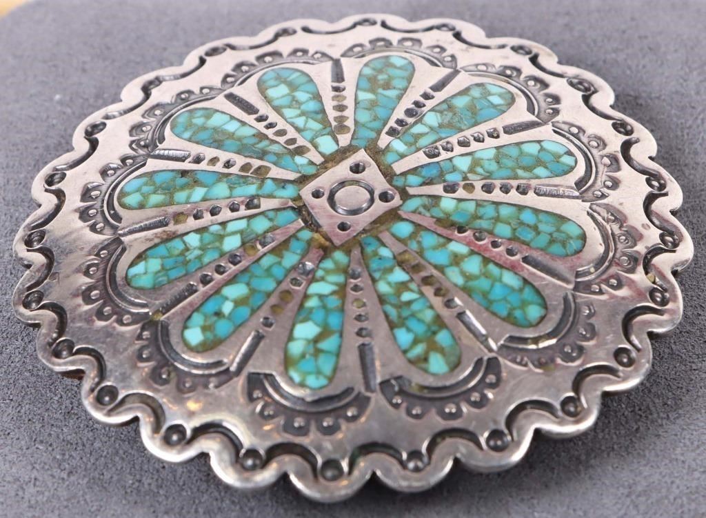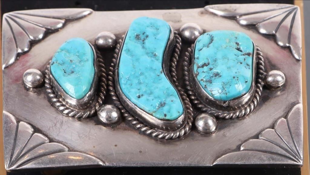 Sterling silver Navajo and AP signed turquoise belt buckles.