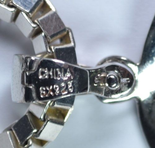 STERLING SILVER NECKLACE AND PENDANT WITH MOTHER OF PEARL, 20" LONG, 2" IN DIA.