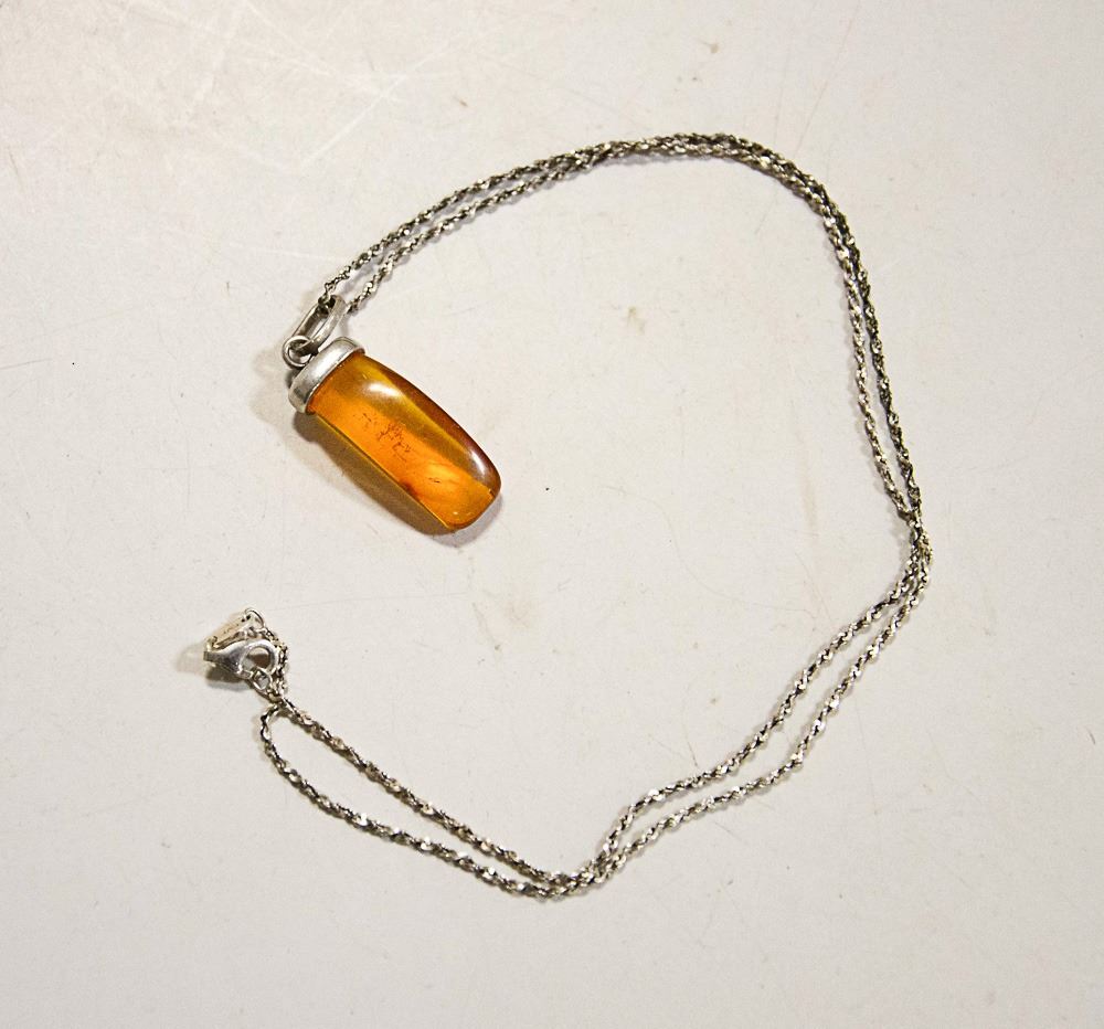 STERLING SILVER NECKLACE WITH AMBER PENDANT