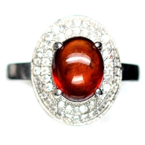 STERLING SILVER ORANGE HESSONITE GARNET LADIES RING - SIZE 7.5