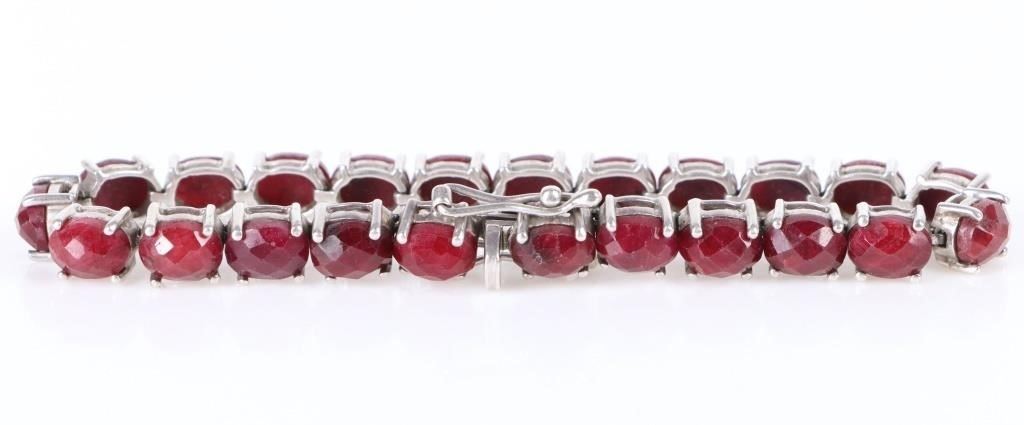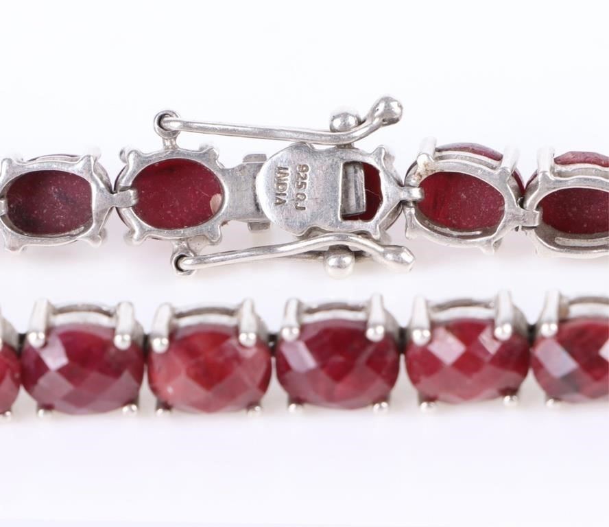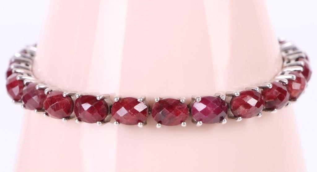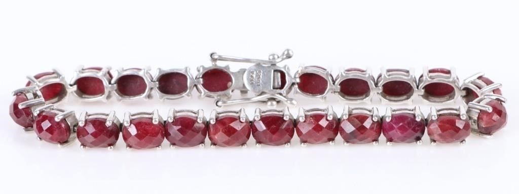 Sterling Silver oval rose ruby ladies bracelet. Gemstones to include twenty-three 1.00ct oval rose cut rubies.