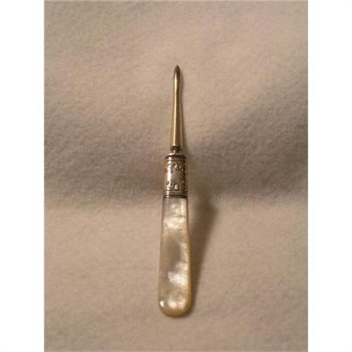 Elegant Victorian sterling silver and mother of pearl nut pick. Has a lovely detail on the ferule.