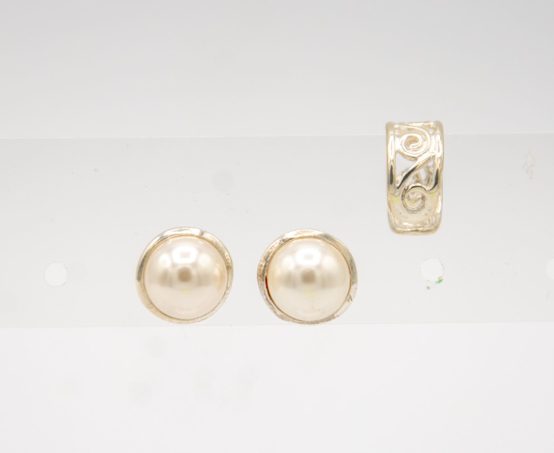 STERLING SILVER PEARLESQUE EARRINGS AND EAR CUFF