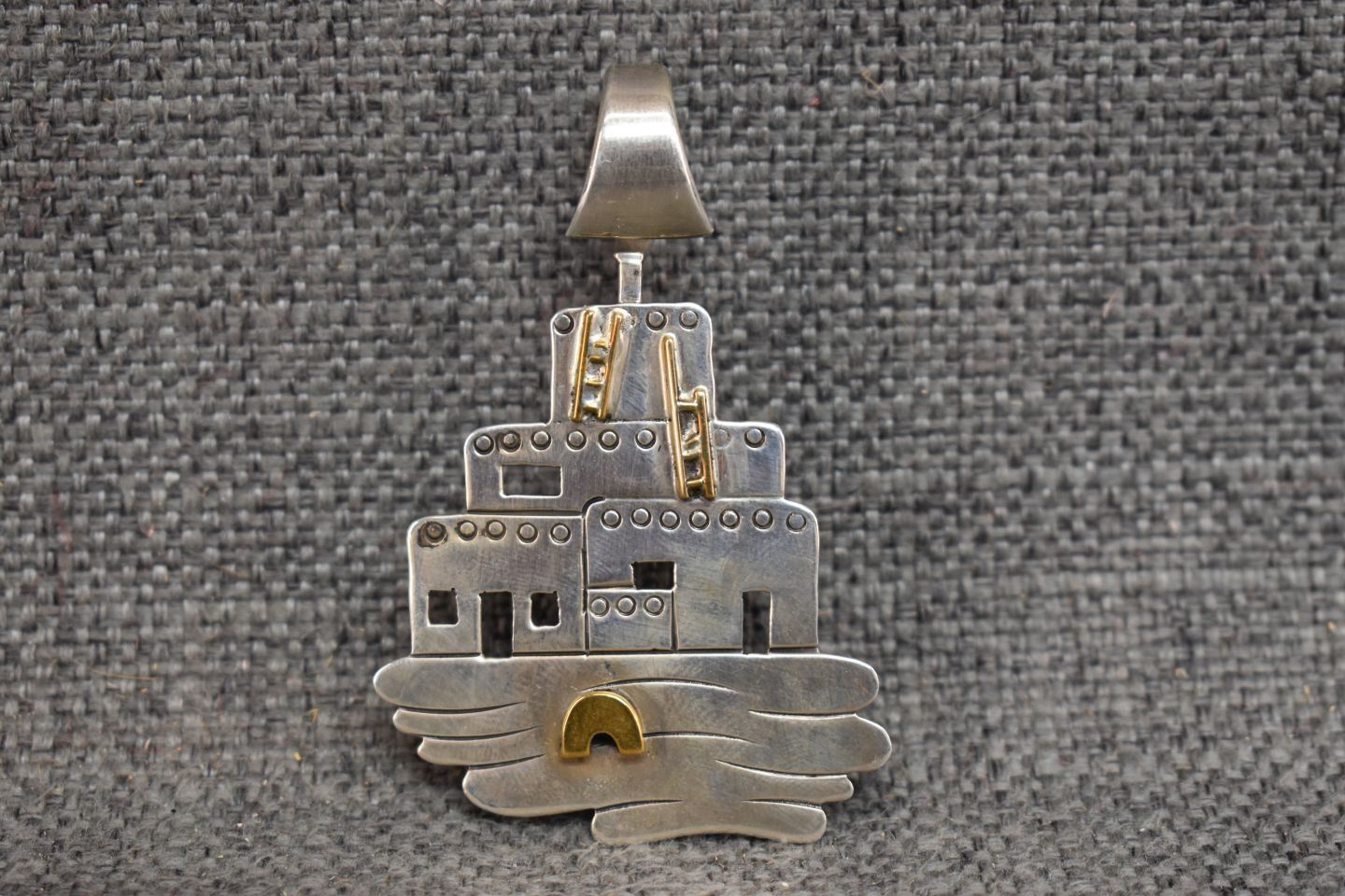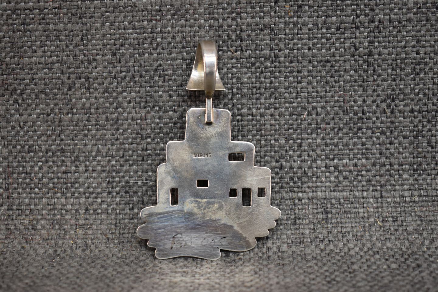 1980's Hand made sterling silver pueblo scene with stamped and cut out design 2.75" x 1.75" total weight 14 grams