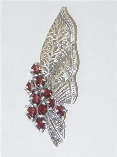 STERLING SILVER PIN SET W/ GARNETS & MARCASITES;