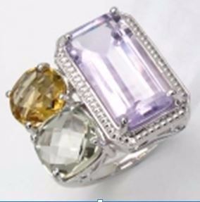 STERLING SILVER PINK AMETHYST, GREEN AMETHYST AND GOLDEN CITRINE RING