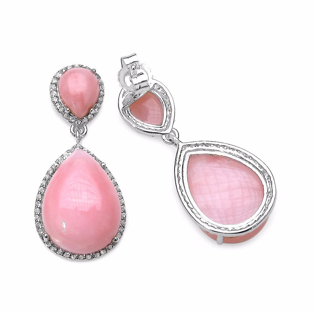 Gemstone Description: Pink Opal Cabochon Pears 18x13mm - 2Pcs + Pink Opal Cabochon Pears 9x7mm - 2Pcs + White Topaz Round 1.00mm - 132Pcs ( Center Stone Height : 7.50mm )