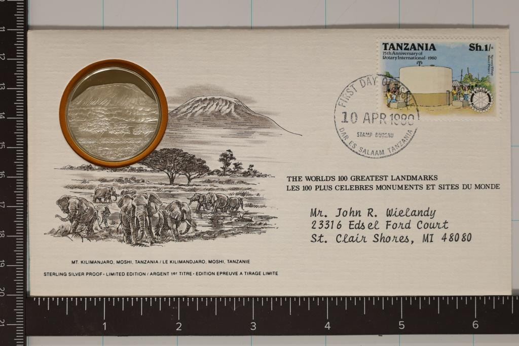 THE WORLD'S 100 GREATEST LANDMARKS, MOUNT KILIMANJARO. BY THE FRANKLIN MINT AND PAPERWORK. 1 1/2'' DIAMETER