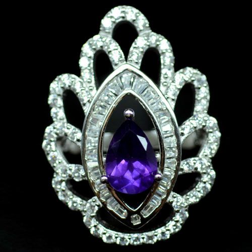 STERLING SILVER PURPLE AMETHYST & TOPAZ RING SZ 5.75