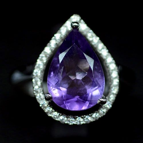 STERLING SILVER PURPLE AMETHYST & TOPAZ RING SZ 7.25