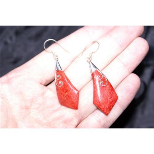 <tr><td>Title:STERLING SILVER RED CORAL Earrings 24 CARATS</td></tr>