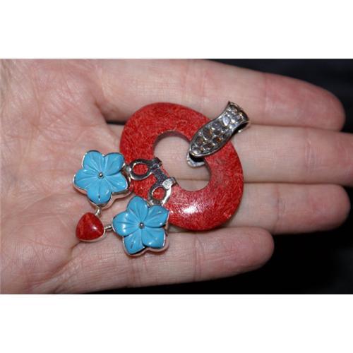 <p>This Listing is a Unique Opportunity to Acquire a STERLING SILVER GENUINE RED SEA CORAL, And GENUINE CARVED TURQUOISE GEMSTONE PENDANT... Amazing!!!
