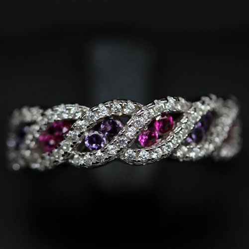 STERLING SILVER RED, PURPLE AND WHITE TOPAZ RING SIZE 6"