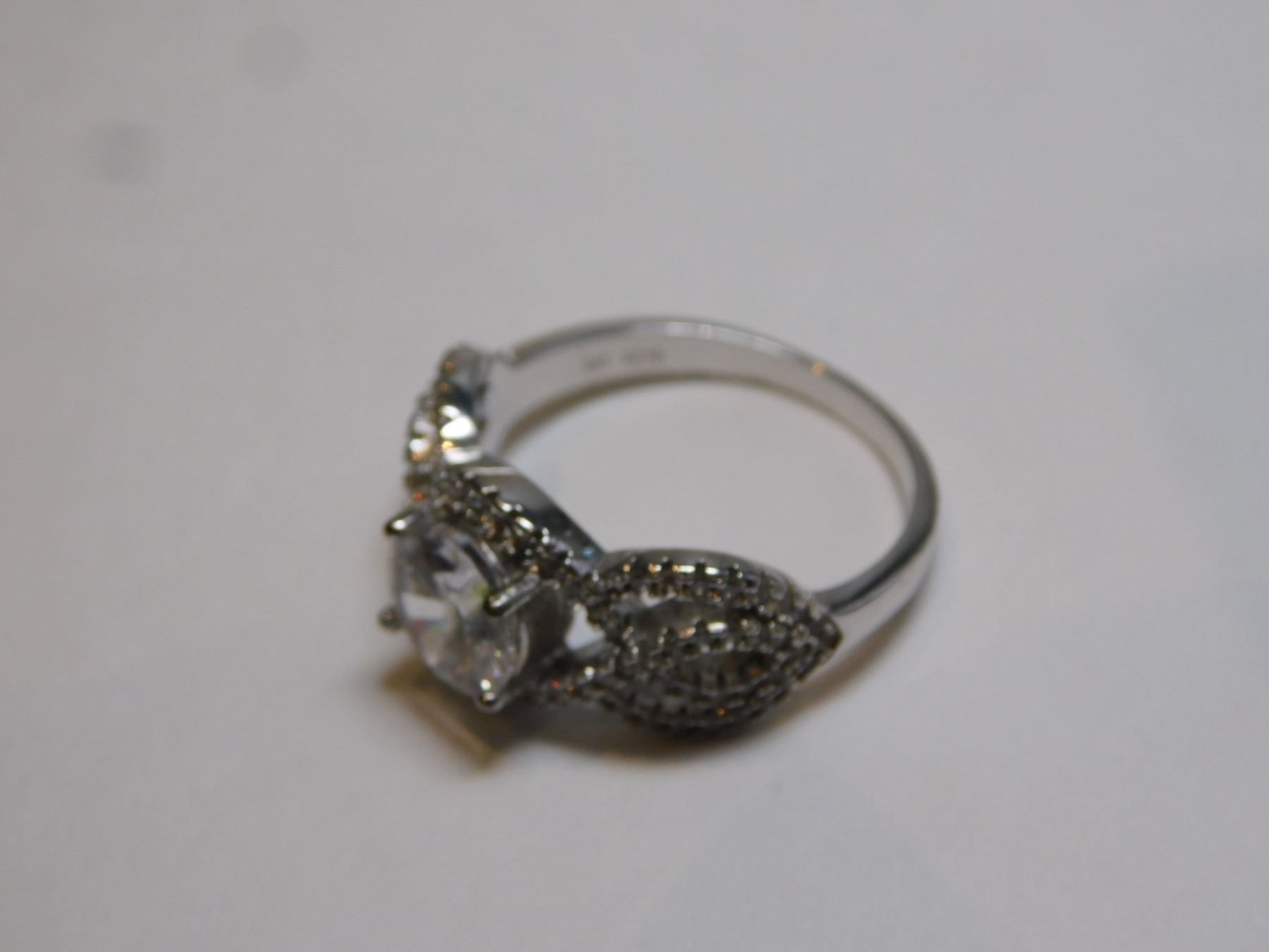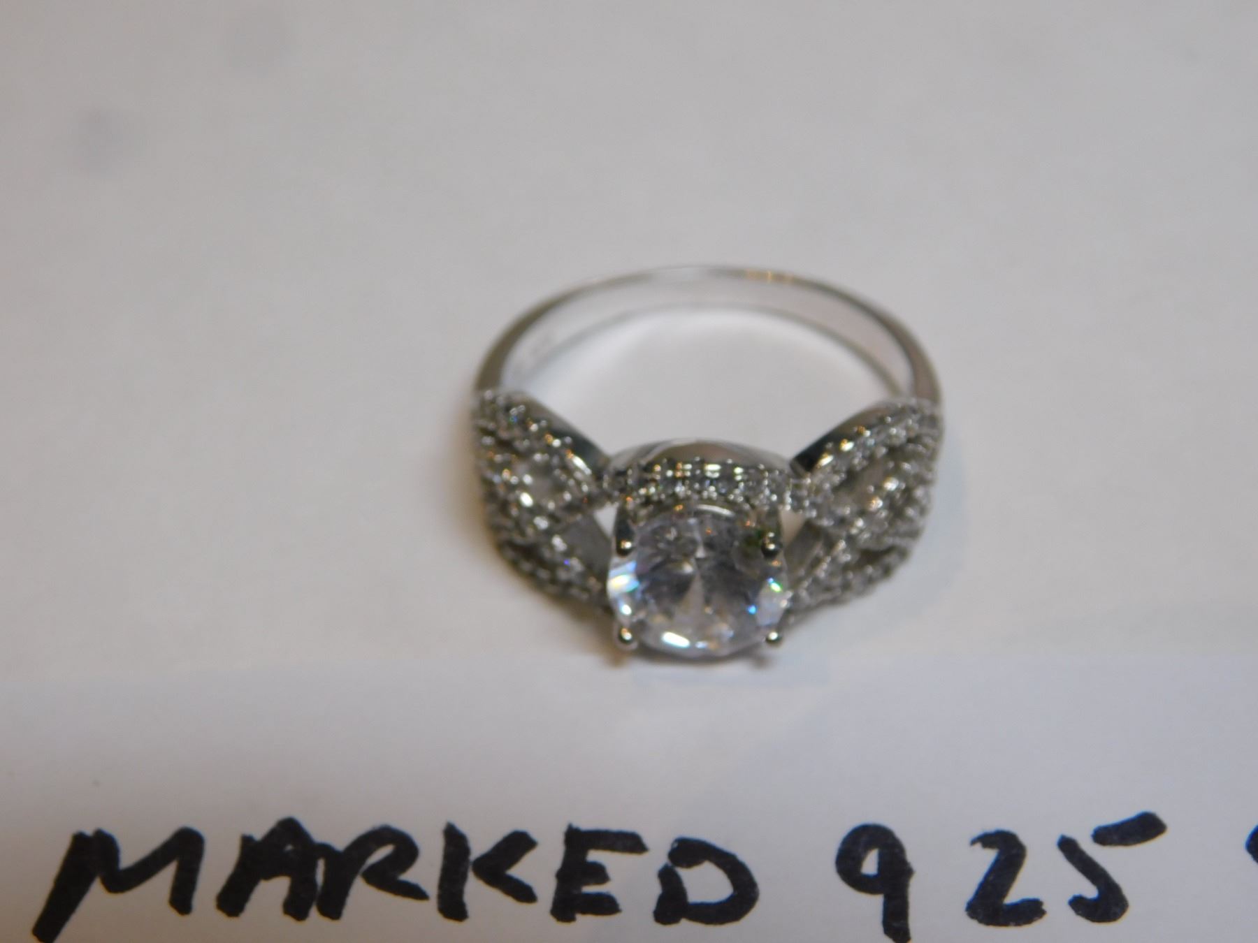 STERLING SILVER RING SIZE 10, MULTIPLE CLEAR STONES