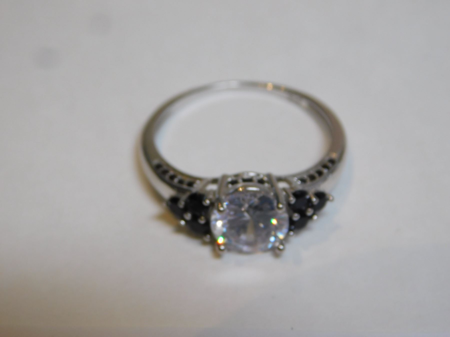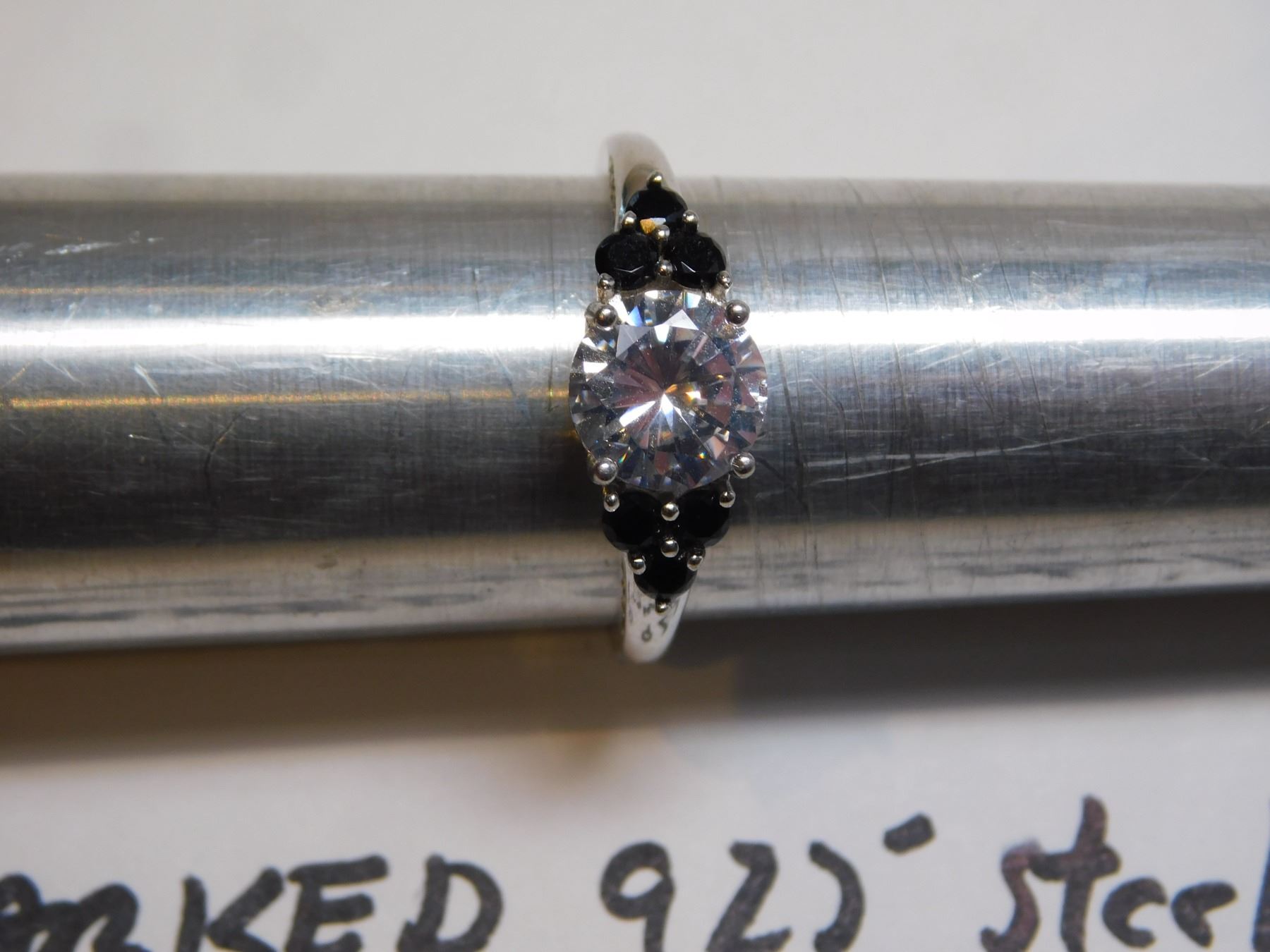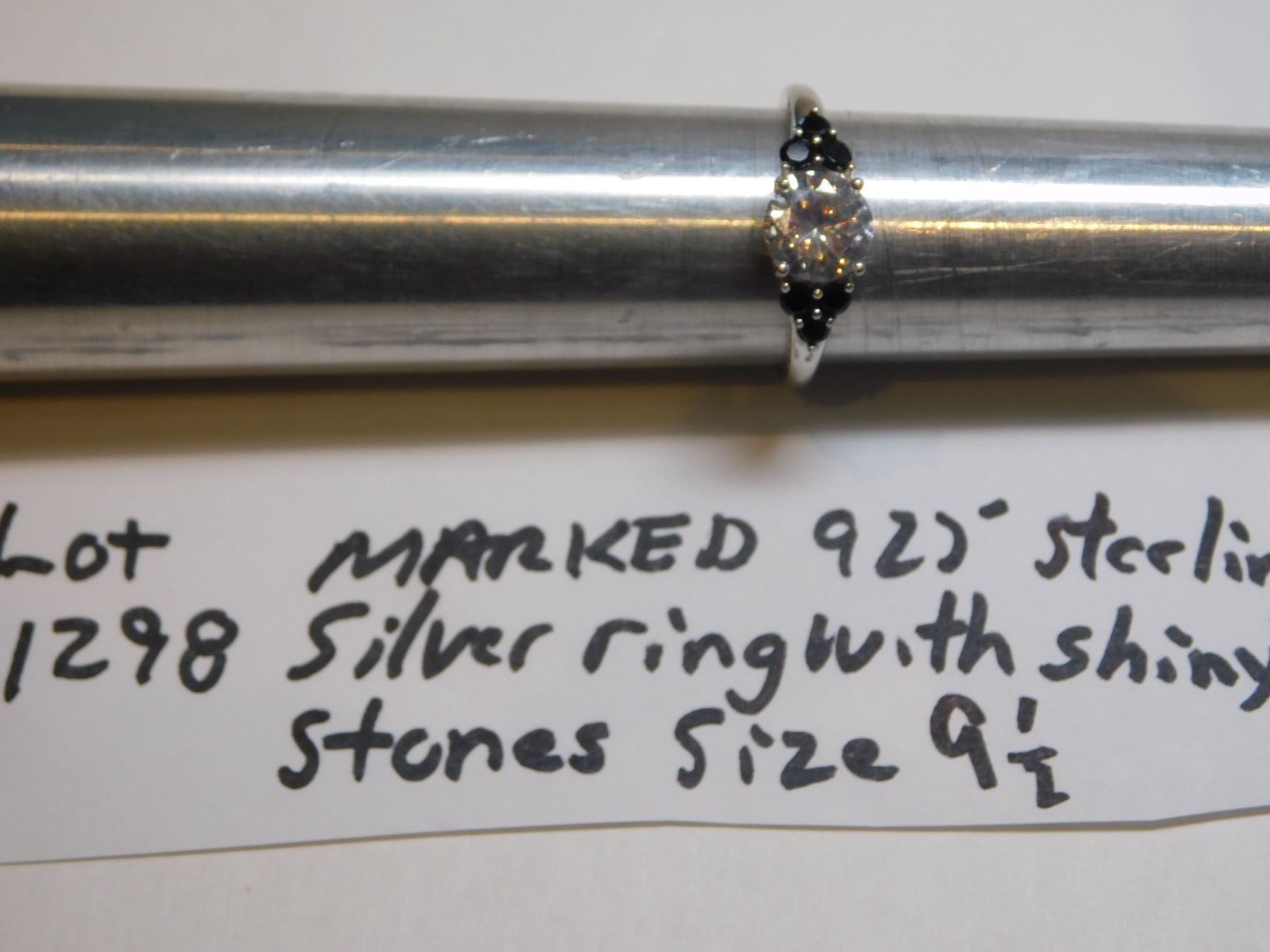STERLING SILVER RING SIZE 9 ½ WITH CLEAR AND BLACK STONES