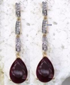 Gemstone Description: Ruby Pears 12x8mm - 2Pcs + White Topaz Round 1.00mm - 30Pcs ( Center Stone Height : 2.50mm ) ( White Pan Rhodium )