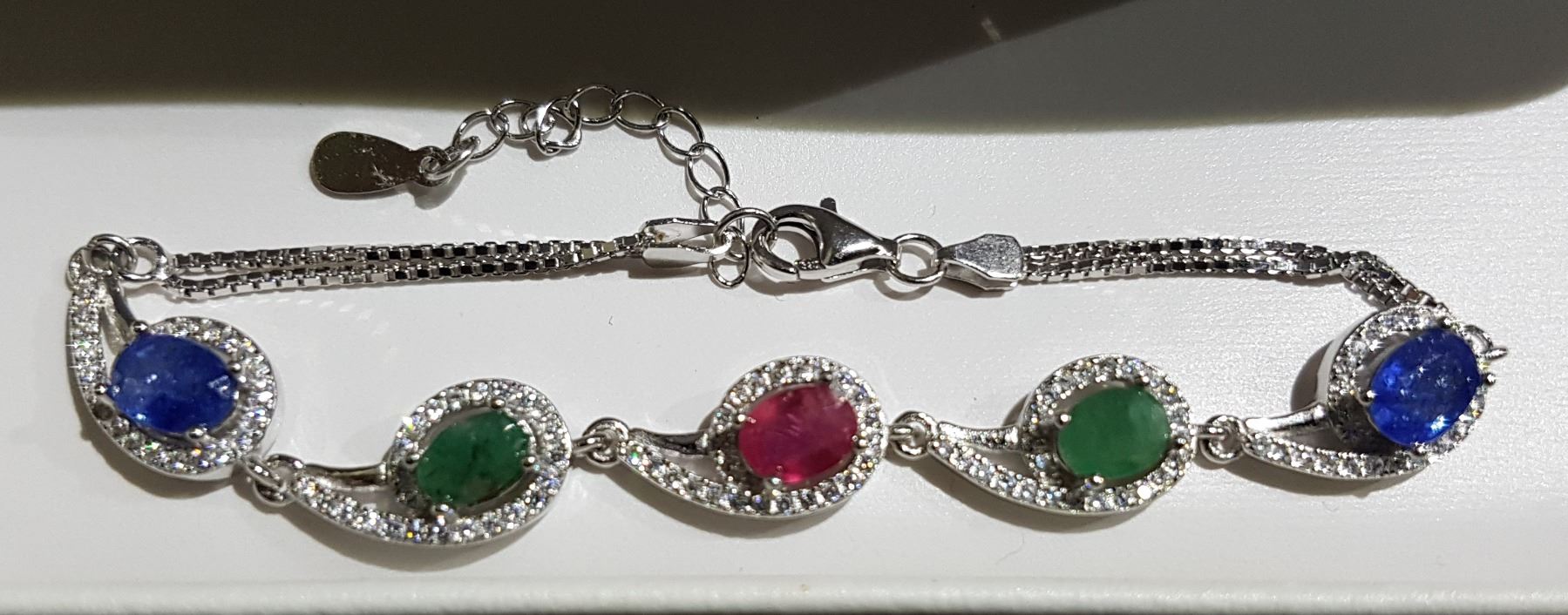 STERLING SILVER RUBY, EMERALD, SAPPHIRE BRACELET