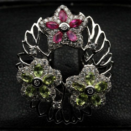 STERLING SILVER RUBY, PERIDOT AND TOPAZ RING SIZE 8