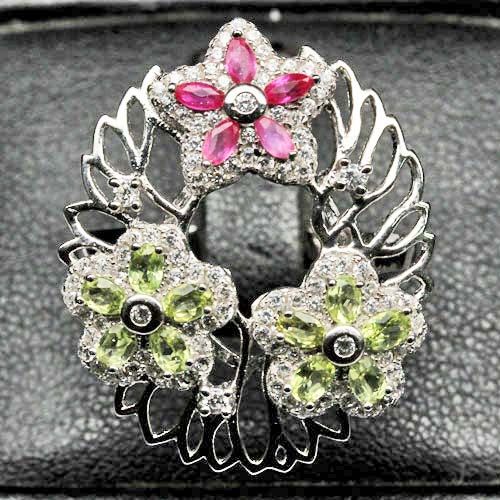 STERLING SILVER RUBY, PERIDOT AND TOPAZ RING SIZE 8