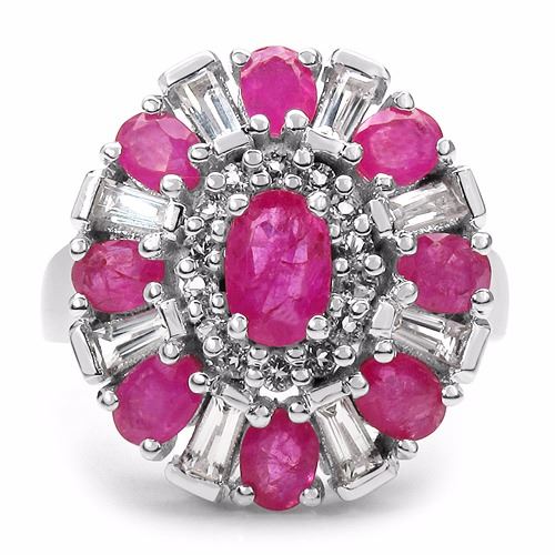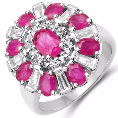 Gemstone Description: Ruby Oval 6x4mm - 1Pc + Ruby Oval 4x3mm - 8Pcs + White Topaz Tapered Baguette 3.50x2.00x1.30mm - 8Pcs + White Topaz Round 1.40mm - 14Pcs