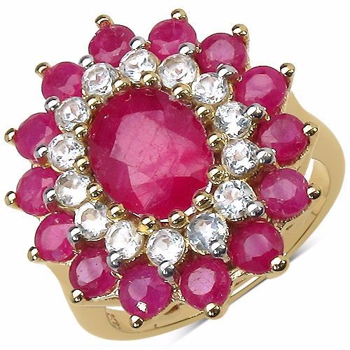 Gemstone Description: Ruby Oval 9x7mm - 1Pc + Thai Ruby Round 3.00mm - 14Pcs + White Topaz Round 2.30-2.40mm - 14Pcs ( White Pan Rhodium Plating )