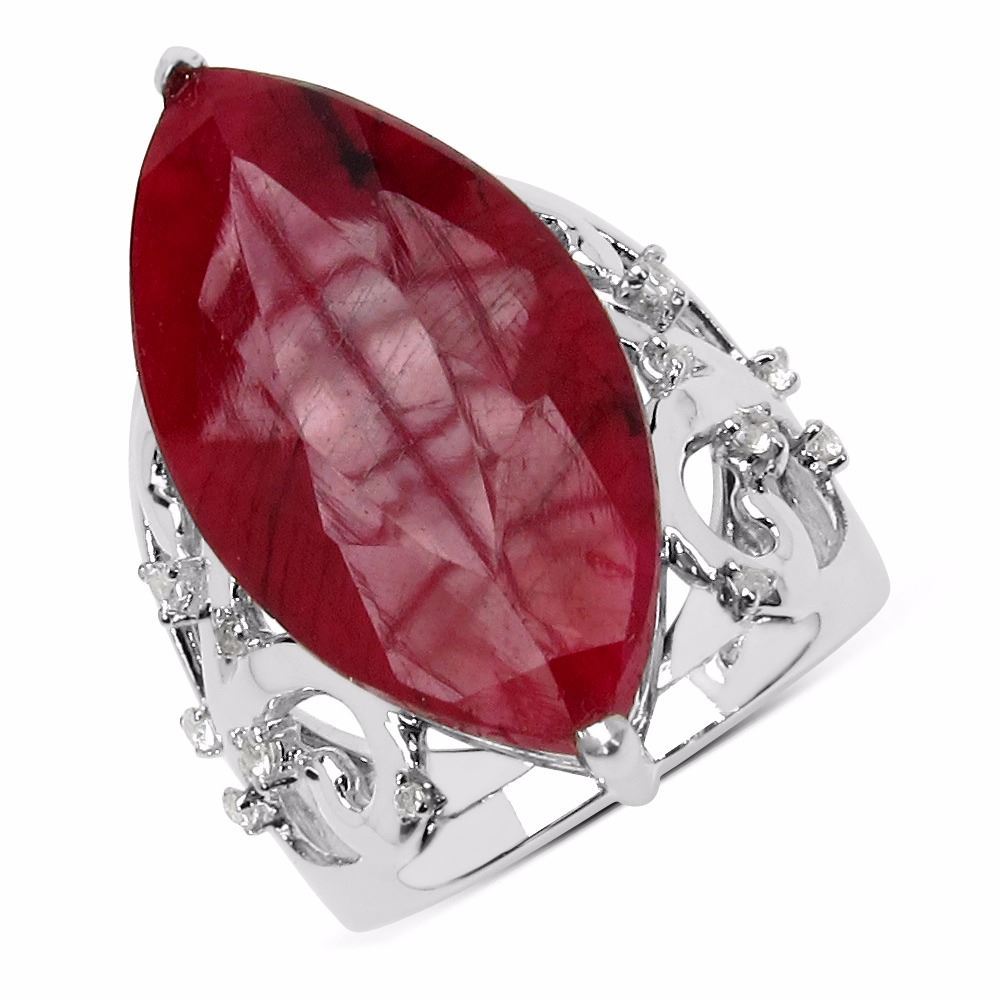 Gemstone Description: Ruby Marquise 28x14mm - 1Pc + White Topaz Round 1.50mm - 4Pcs + White Topaz Round 1.20mm - 4Pcs + White Topaz Round 1.00mm - 6Pcs ( Centre Stone Height : 6.50mm )