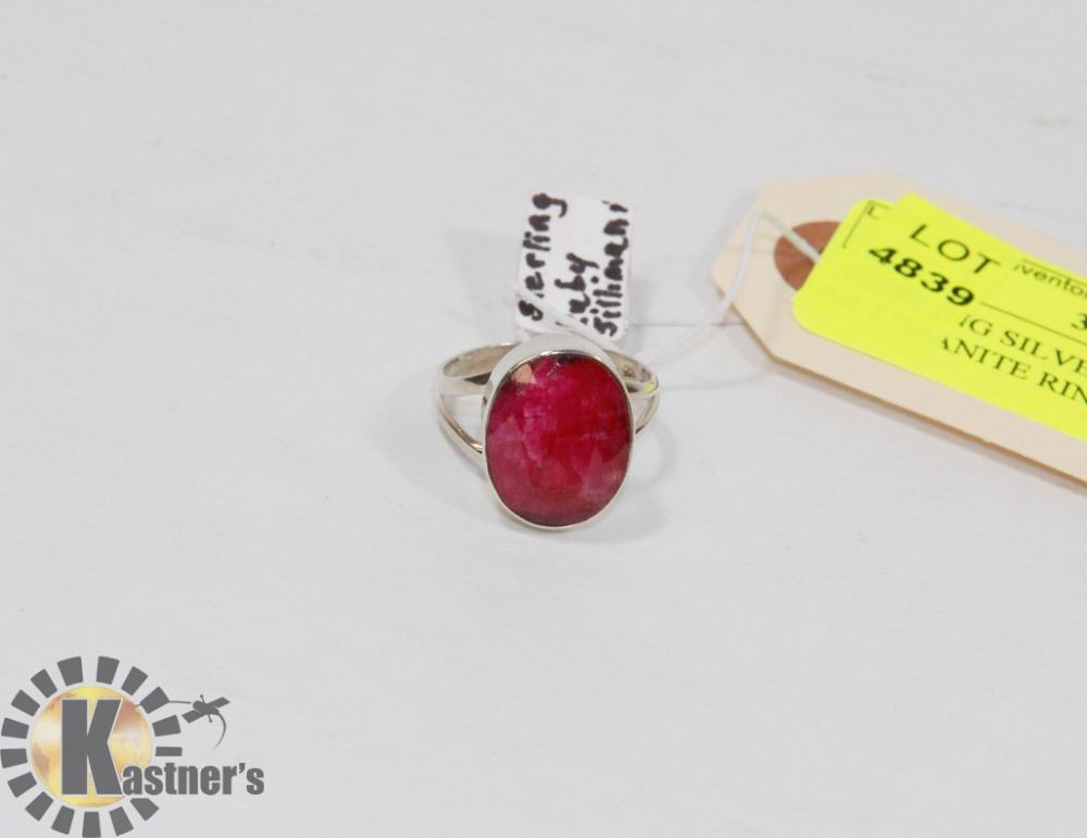 STERLING SILVER RUBY SILLIMANITE RING SIZE 9.