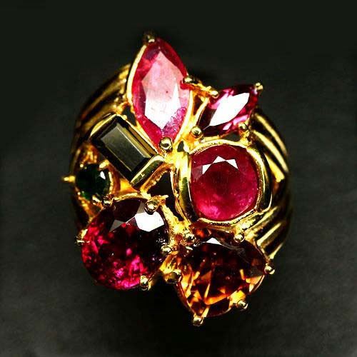 STERLING SILVER RUBY, TOPAZ & GARNET LADIES RING - SIZE 7.25