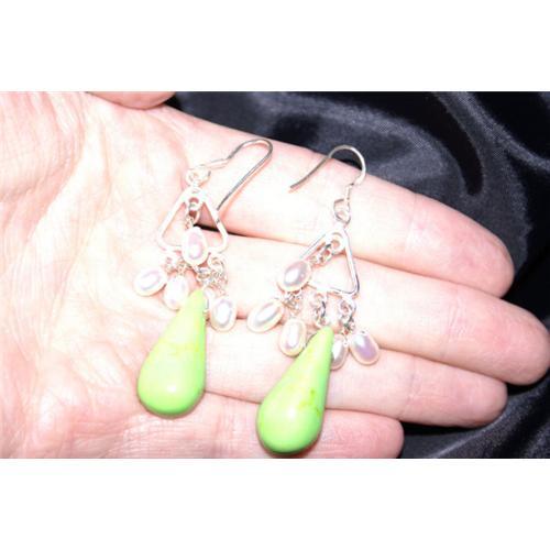 <p>This Listing is a Unique Opportunity to Acquire a Pair of STERLING SILVER GENUINE RARE LIME TURQUOISE GEMSTONE And PEARL EARRINGS... Amazing!!!