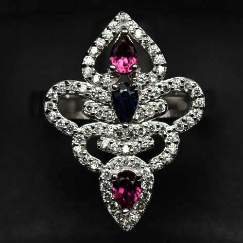 STERLING SILVER SAPPHIRE, GARNET, RHODOLITE, TOPAZ RING