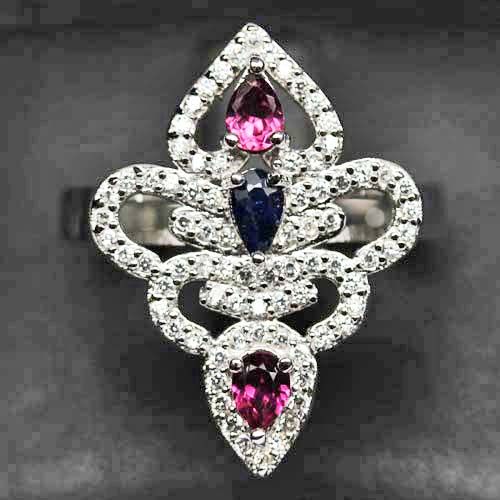 STERLING SILVER SAPPHIRE, GARNET, RHODOLITE, TOPAZ RING