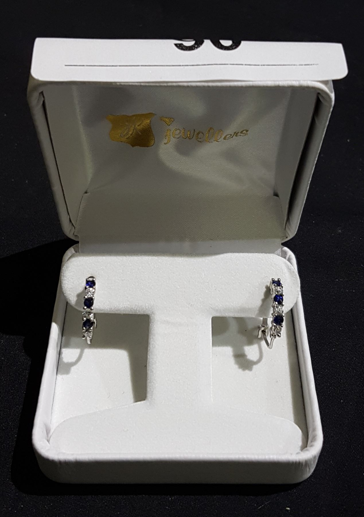 STERLING SILVER SAPPHIRE HOOP EARRINGS